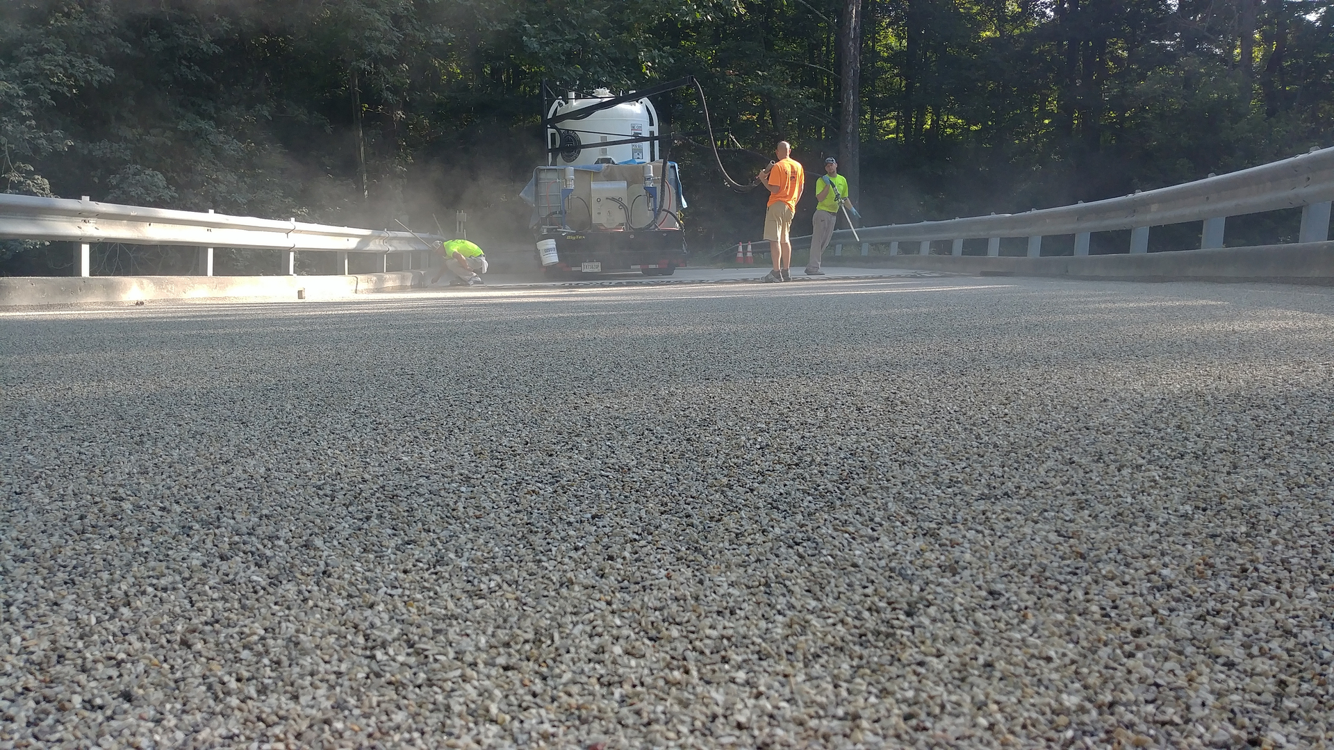 The overlay material is designed to protect bridge decks from the infiltration of deicing salts and reduce long term maintenance costs.